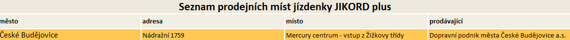 prodávající jízdenku JIKORD plus a JIKORD plus Bavorsko (u řidiče) na uvedených linkách a úsecích: